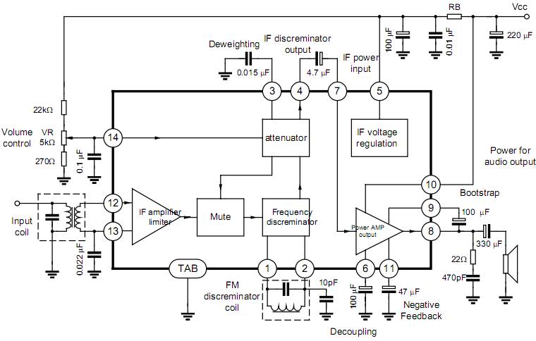 When VCC=12V,RL=8?,Output is 1.2W(12"TV)
