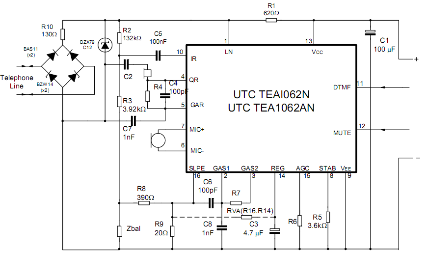 * Line loss compensation facility, line current depedant (microphone and earpiece amplifiers).