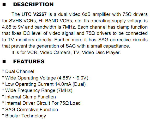 DUAL VIDEO 6dB AMPLIFIER WITH 75Ω DRIVER