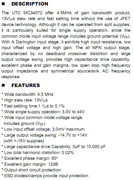 HIGH SLEW RATE, WIDE BANDWIDTH , SINGLE SUPPLY OPERATIONAL AMPLIFIER