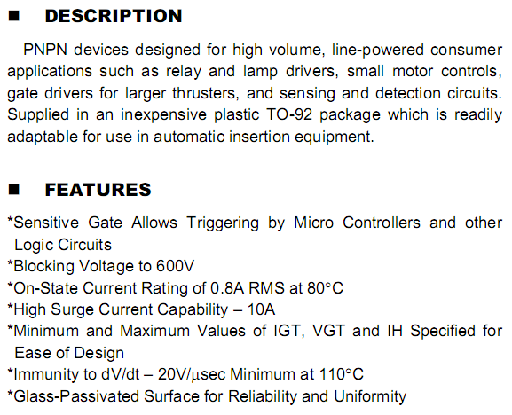 SENSITIVE GATE SILICON CONTROLLED RECTIFIERS REVERSE BLOCKING THYRISTORS