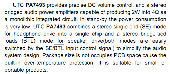 * Output power 2W × 2 (VCC=6V, THD=1%, RL=4?)